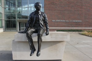 Today I took a tour of campus with my camera. I rode my bike through the same area that I took the butterfly picture from yesterday, but I kept going. I wanted to shoot on campus today. One of my favorite places to visit is the fairly new Neil Armstrong statue just outside of the building that bears his name. Once again I was in manual mode while I am trying to learn this camera. I am sure over the next year many more landmarks from campus will end up on this site.
