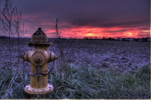 This morning I was on my way to work when I saw a beautiful sunrise. I was mad the day before because for the first time in a long time I did not have my camera. I made sure I had it today, but it looked like the clouds would waste the sunrise. Just then it really highlighted them, and made for a beautiful sunrise. I always try and include something in my picture other than the sky so I hurried up and found something for the foreground. This hydrant served the purpose on a desolate road. It seems that more often than not I see a good sunrise on my way to work. Today I took the time to actually capture it on film. If you look real hard in the background you can actually see my place of employment. I have a great view coming in everyday for sure. I don’t know if the HDR helped or hurt this picture. I like it in a small view, but blown up the actually fiery clouds don’t look as good.