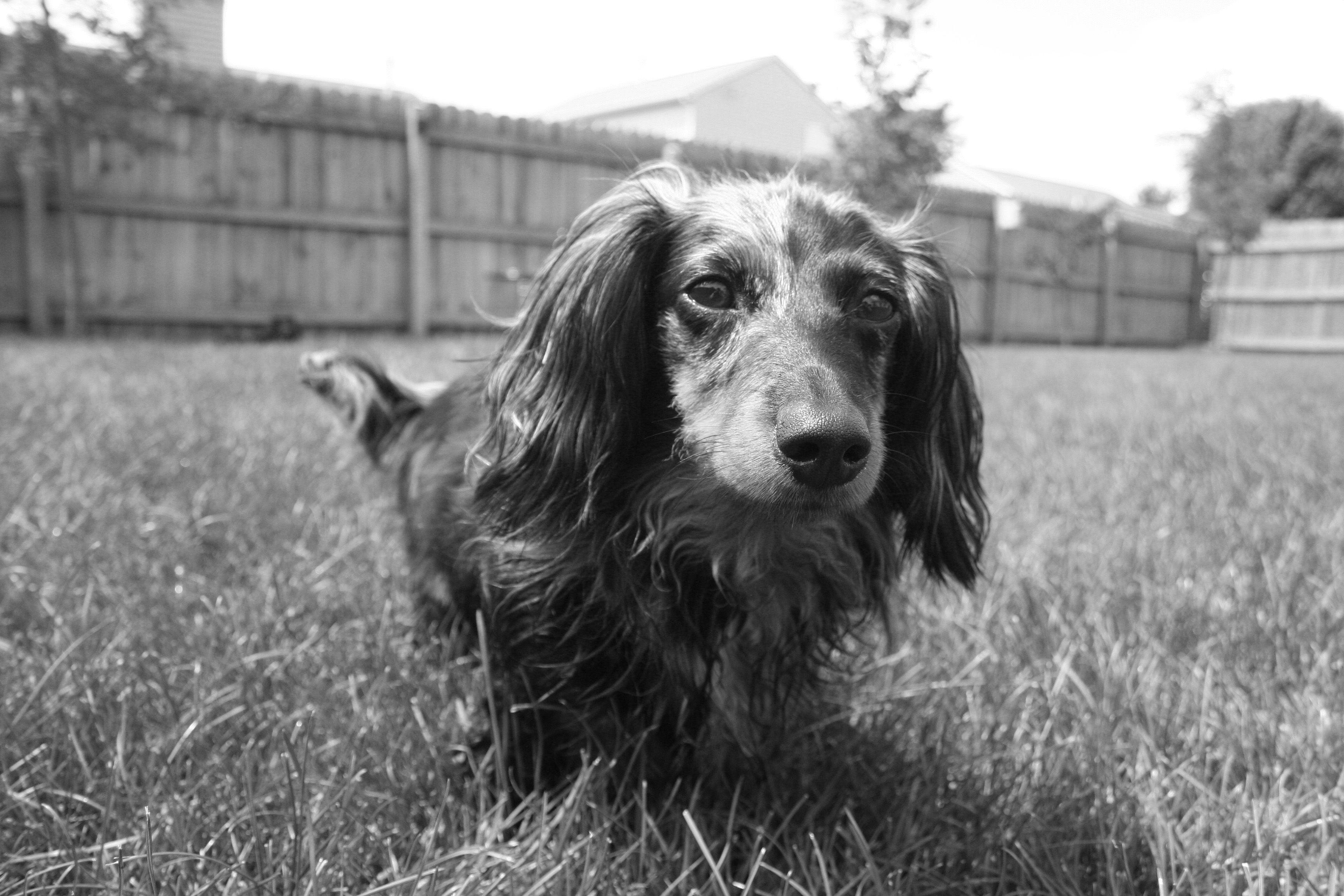 I said earlier how today felt like a black and white day. That was before I found out one of my brothers dogs passed on. You might remember her from a post about a week ago. She was the dog with the firefly in front of her. Some people might have seen the sunset, but not many got past that cute dog. She was one of my best models during her brief life. During the short time that I stayed with my brother upon moving to West Lafayette I got to see Cappie everyday. This blog is supposed to be sort of a look into the things that went on over the year of taking pictures. This picture was taken back in June, but its subject has a great deal of bearing on how I feel today. People who say that they are just pets have obviously never had a pet. They are hard to say goodbye to especially when they are taken so young. Just a week ago I was playing with her on the floor. They say that pets are the first people that come up to you in heaven. I have a funny feeling that Cappie will stop just short so that she can roll over to let you pet her belly. Until then pal.
