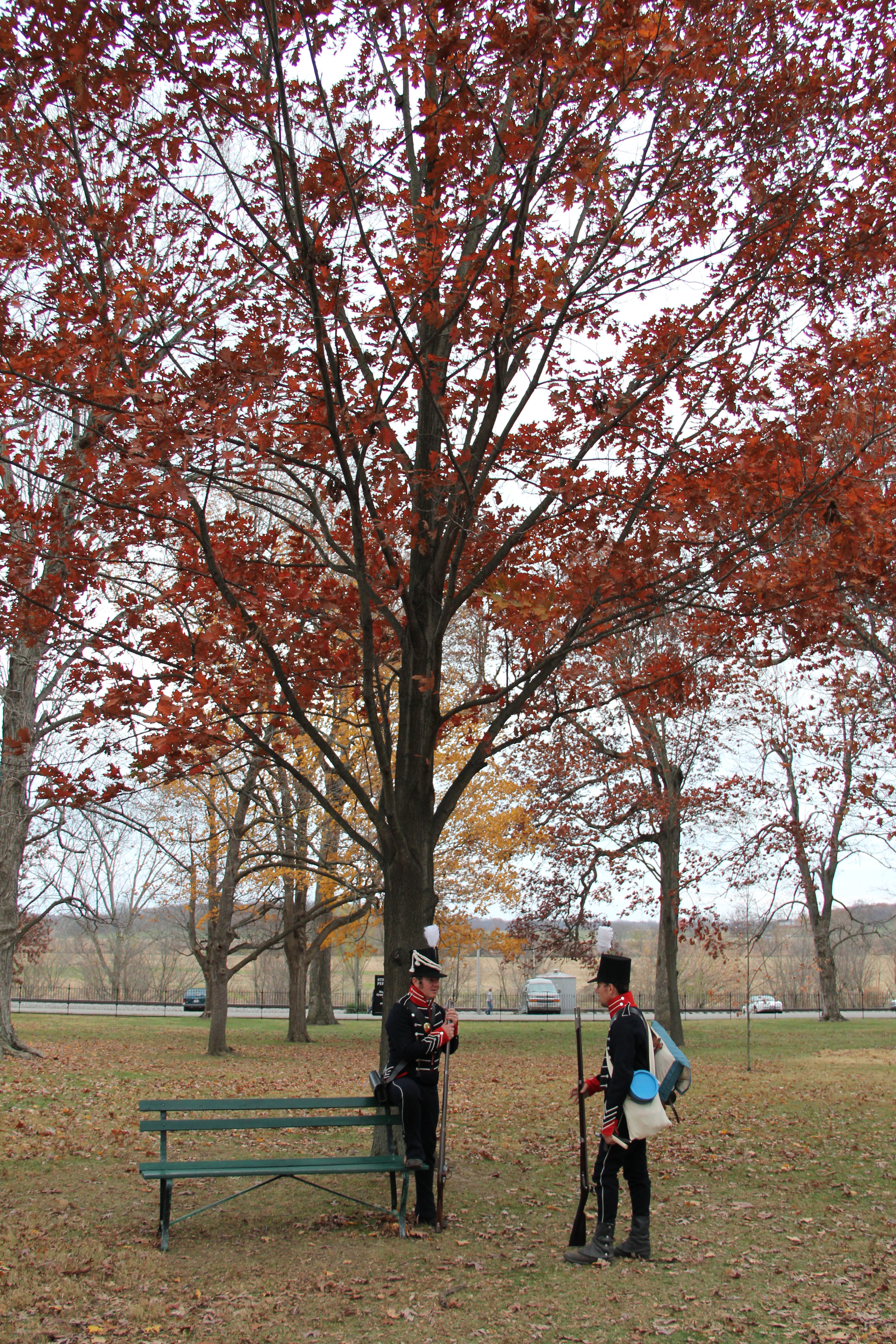 I had planned on being out of town today so I wrote off getting to the Tippecanoe Battleground to see the re-enactment this weekend. They are celebrating the 200th anniversary of the major battle that not only helped start the war of 1812, but also gave William Henry Harrison a needed boost that he rode all the way to the White House. I was out still trying to get my fall barn picture when I decided to see if I could find some good colors at the battleground. Of course I pulled up as everyone was leaving, but I did manage to get a couple of good pictures. I liked this one of two men talking after the day was over. For some reason the bench, tree, and the uniforms seemed like a good shot. I guess it could have been composed a bit better, but I was reacting to something that happened behind me so time was not on my side. This yet again was not the picture that I set out to take, but I like the happy accident.