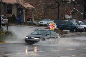 This afternoon in West Lafayette we had a bad storm. We were all sent to the bottom floor to wait it out and luckily nothing bad came of it. When I came home tonight I noticed Highway 52 out front was flooded. I grabbed my camera and made my way out there to get a couple pictures. I wanted to get a little closer, but the pesky highway traffic stopped me. I settled for a spot across the street to get my picture. I had to time my shot so that the traffic on my side was not in the way, but after a couple of misses I snapped this shot. It is not the best picture ever, but I like the look of the water.