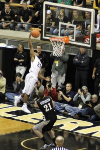 Tonight I was at the Purdue basketball game against Western Michigan. This game was not originally on the schedule, but I am glad that it was added. We had pretty good seats for the game, and I took a couple decent pictures. The moment of the game though had to be when 5’9″ guard Lewis Jackson went on the break. I thought that he would get the ball to freshman Jacob Lawson who can get up. Little did I know that “LewJack” would take care of business himself and slam the ball. It was a great moment that I wish more fans had seen live. If the students had not been on break I think that the arena would have explloded.