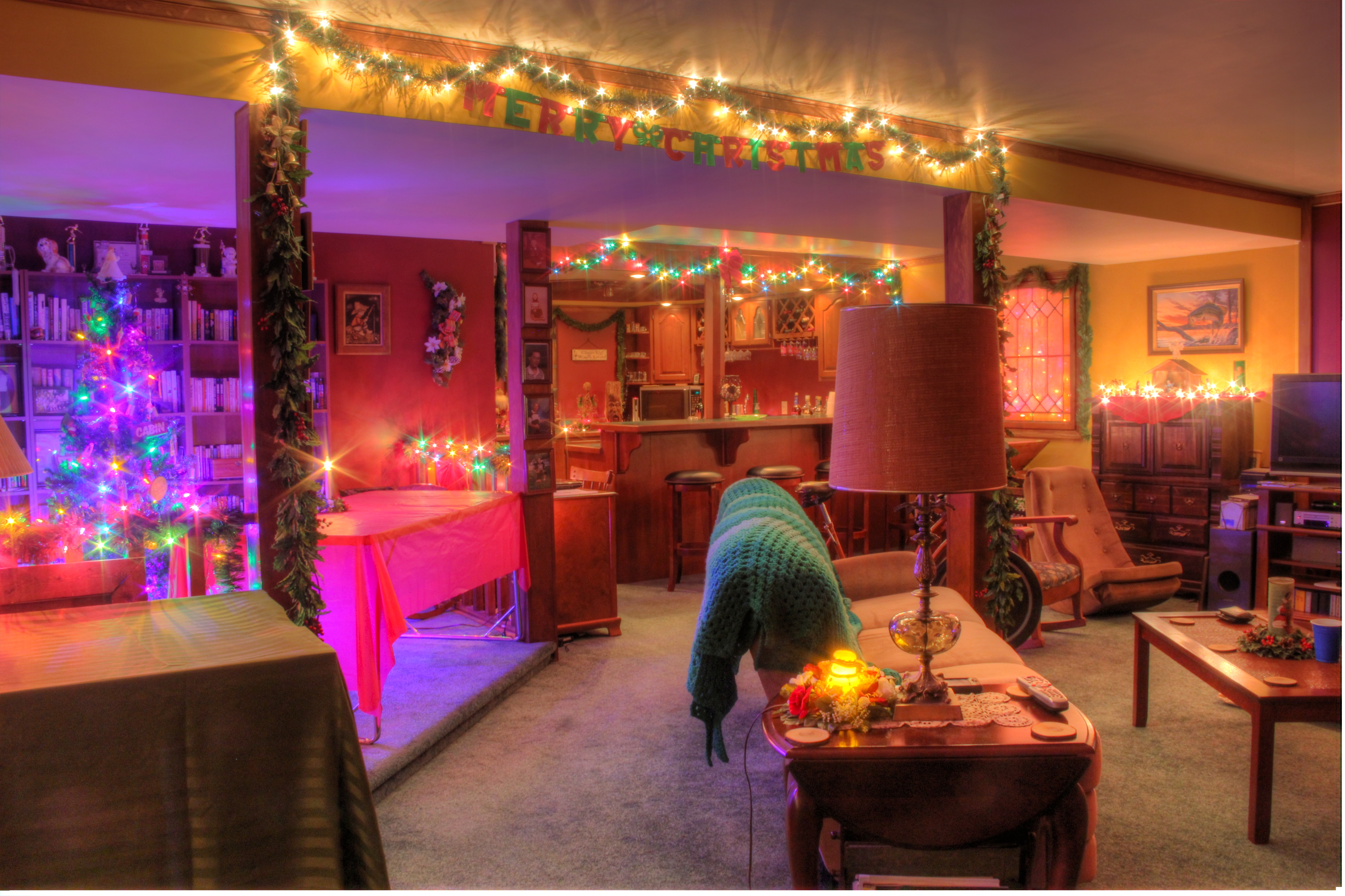 Today’s picture was taken about 90 miles further north than normal. I am back in my hometown for a Christmas party tomorrow. I always enjoy how my father decorates the basement, so I knew that I would take some pictures. Out of the ones that I took today I liked this one the best. I set up my tripod on one of the tables set up for the party tomorrow and pointed the camera towards the bar. I wanted to include the tree in the study and the stained glass window in the shot. It worked out pretty good for the first try. Using the tripod allowed me to get a couple longer exposures into the mix. I have a couple more HDR shots from the day, but this site only allows me to post one picture a post. If you want to see the others you can click on the Pinola Photgraphy on Facebook link at the bottom or search for Pinola Photography on Facebook.