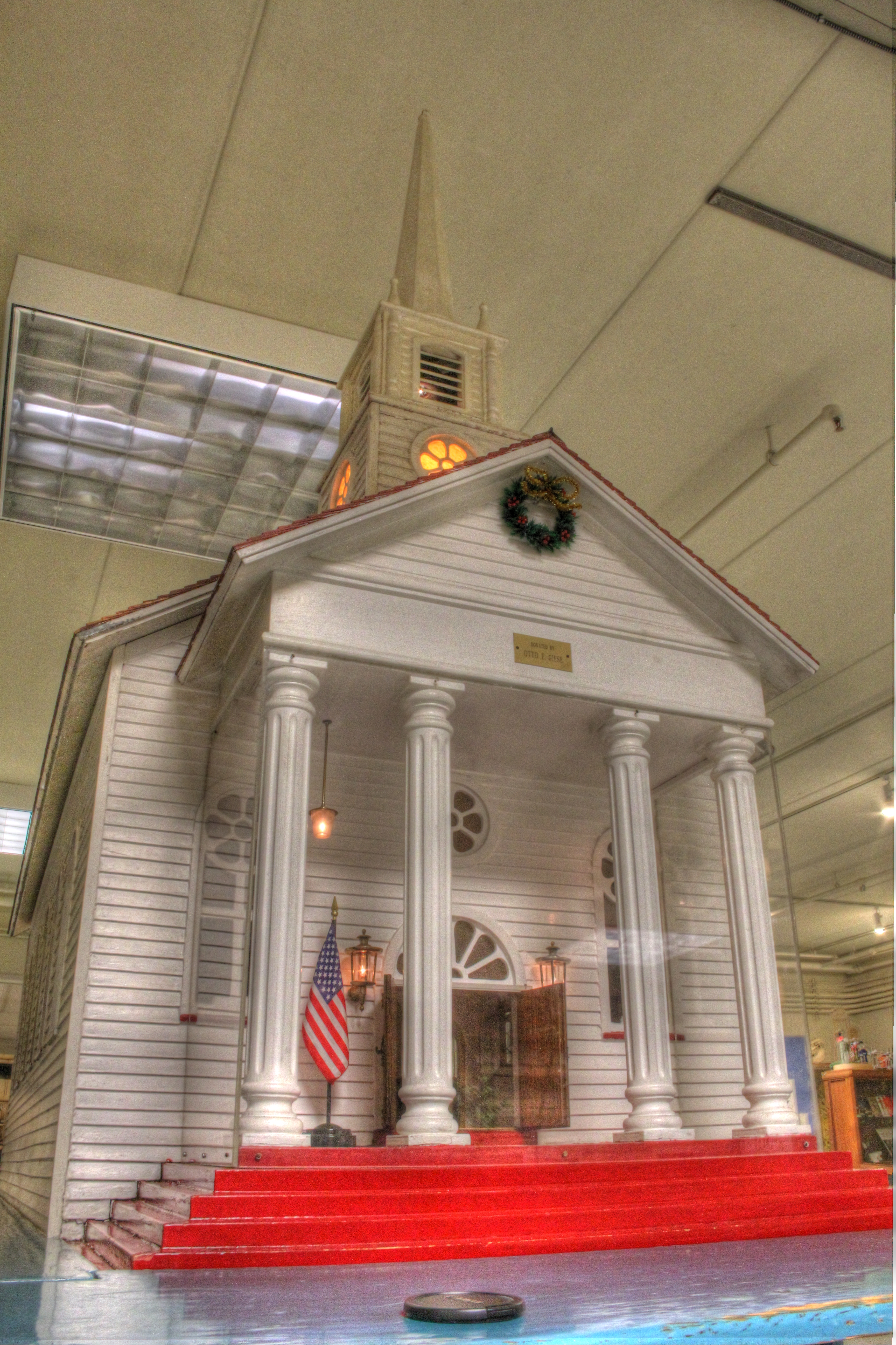 In my town as a kid I remember visiting a cool church that was at our local museum. It is not the biggest marvel of technology, but it is still very cool to see. In 1944 a LaPorte man was spending Christmas hemmed in at the Battle of the Bulge. As the bombs rained down on him he made a promise that if he made it back home he would make something that embodied the spirit of Christmas. This is the result of his efforts. He modeled the church after a real one in Lowell, Indiana. It is a scale model with every inch on the model corresponding to a foot in real life. The inside of the church holds 167 dolls in the congregation that sit in their pews waiting for the choir of 28 dolls to march in. Thirty two dolls sit in the choir loft as well. When you add the minister that equals 228 dolls. Now I am a grown man, and dolls are not my thing. This church though was great to see as a kid, and reading the story it was nice to see again today. Otto Giese used to display it in front of his business here in town, and now it sits at the LaPorte County Museum for all to see. As the people in the church sing their Christmas songs you really feel the spirit of Christmas. I think that Otto accomplished his mission. The church has seen many renovations, but the feeling is still the same. As it celebrates it’s 65th anniversary it is still surrounded by people curious to see the mechanics involved.