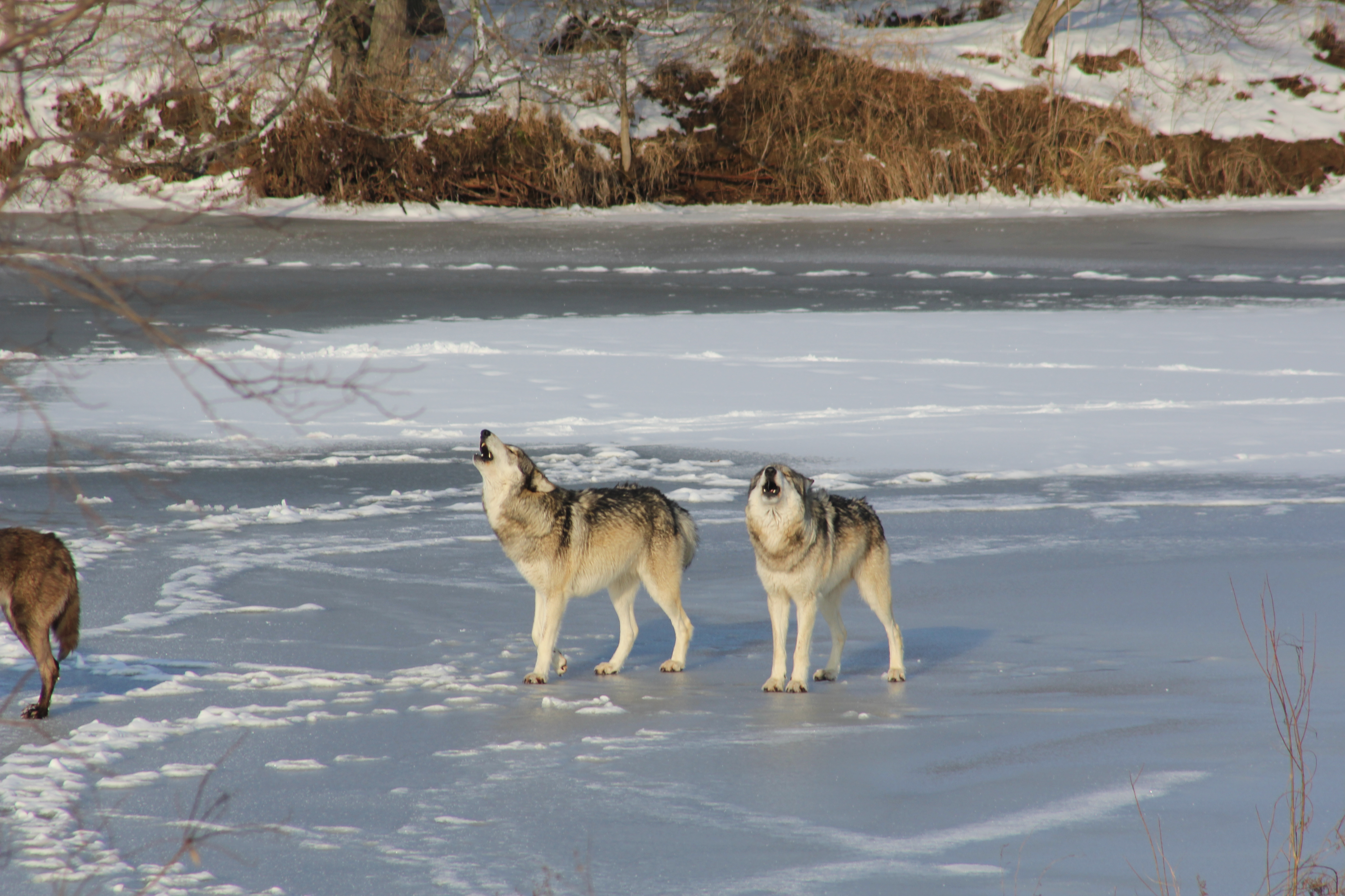 Today I was sitting around trying to think of a place to go and get some pictures. I had a couple of towns in mind knowing that I had to be back in West Lafayette at night. It was then that I realized that Wolf Park was open today for the one time in the winter. If I wanted a picture of the wolves on the frozen lake I had to move quickly. On the way to the park I was pleased to see that we received even more snow overnight. The grounds that would have been ugly earlier in the week would be beautiful today. I took in a lecture and then took the tour around the grounds. I experimented a bit more with shooting through the fence, but with the heavy sunlight I could always see at least a remnant of the light. When it was all said and down I went up high on the main bleachers to have an unobstructed view of the wolves. For some reason when I was up there the wolves started howling. For most of the time these two were right next to each other, and it did not look too great. Luckily they separated just enough to get this shot. This is straight out of the camera with no processing done to it. I did manage to learn a few things today as well as have a lot of fun. I just may have to sign up for the photo day in the enclosure next month. I would love to be able to get close to the wolves without a fence in the way. Photography has pushed me to do things that I normally would not do. Without a camera I would want something in between me and the predators. To get a shot though I would step inside.
