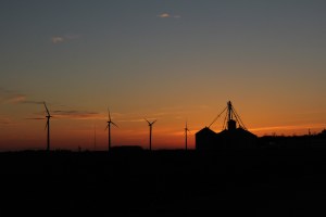 Tonight I thought that the clouds were just right to get a great sunset picture. Of course the conditions change quickly sometimes, and the clouds left as soon as they came in. I still thought that I could capture something with the fading light. The problem was that I was behind schedule getting out to my location so I had to hustle to get anything. I stopped when I came to the first windmills and turned towards them. I found a nice grain elevator to silhouette with the windmills I knew that it could look good if done properly. I think that I did an alright job of capturing the windmills with the barn even while talking on the phone. I think that Ansel Adams did such great work because he didn’t have a cell phone with him. Luckily though the phone allowed me to continue a conversation while still getting my shot. I always try to learn something everyday, and today I learned that I can still function while on the phone. The best part about the picture is that I captured exactly what I wanted to get without the aid of HDR. I think that I could have tweaked this shot a little in the HDR process, but I am more than happy with the results straight out of the camera.