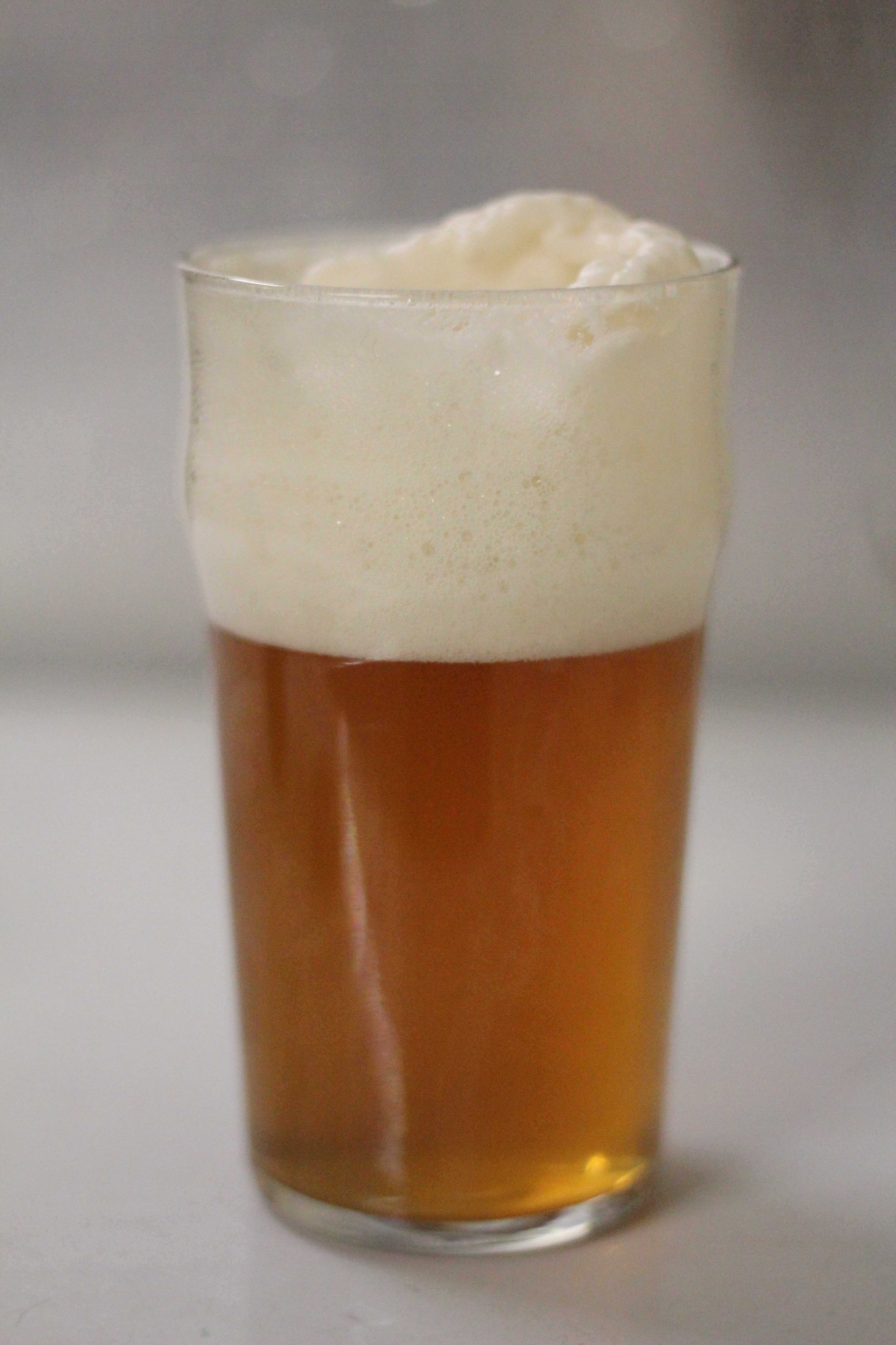 Tonight I brewed my second beer. I had some pictures from the brewing process, but for some reason I liked this picture of one of the beers that we drank while brewing the best. My sister in law had one with a little too much foam on it, and of course the annoying brother in law had to take a picture of it. As it usually goes the picture you didn’t think about taking is the one that you like the best.