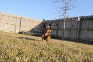 Last night this blog hit another milestone of 5,000 views. While that is not a lot of hits compared to some sites it seems as if this little blog gets to the next 1,000 milestone quicker than the last time. To celebrate the milestone I thought that I would post this picture of Riot from last night. I used the tried and true technique of calling him from across the back yard. As he ran to me he had his tongue out and kept getting airborne. Somewhere in all of that I started calling him M.J. because of the tongue.