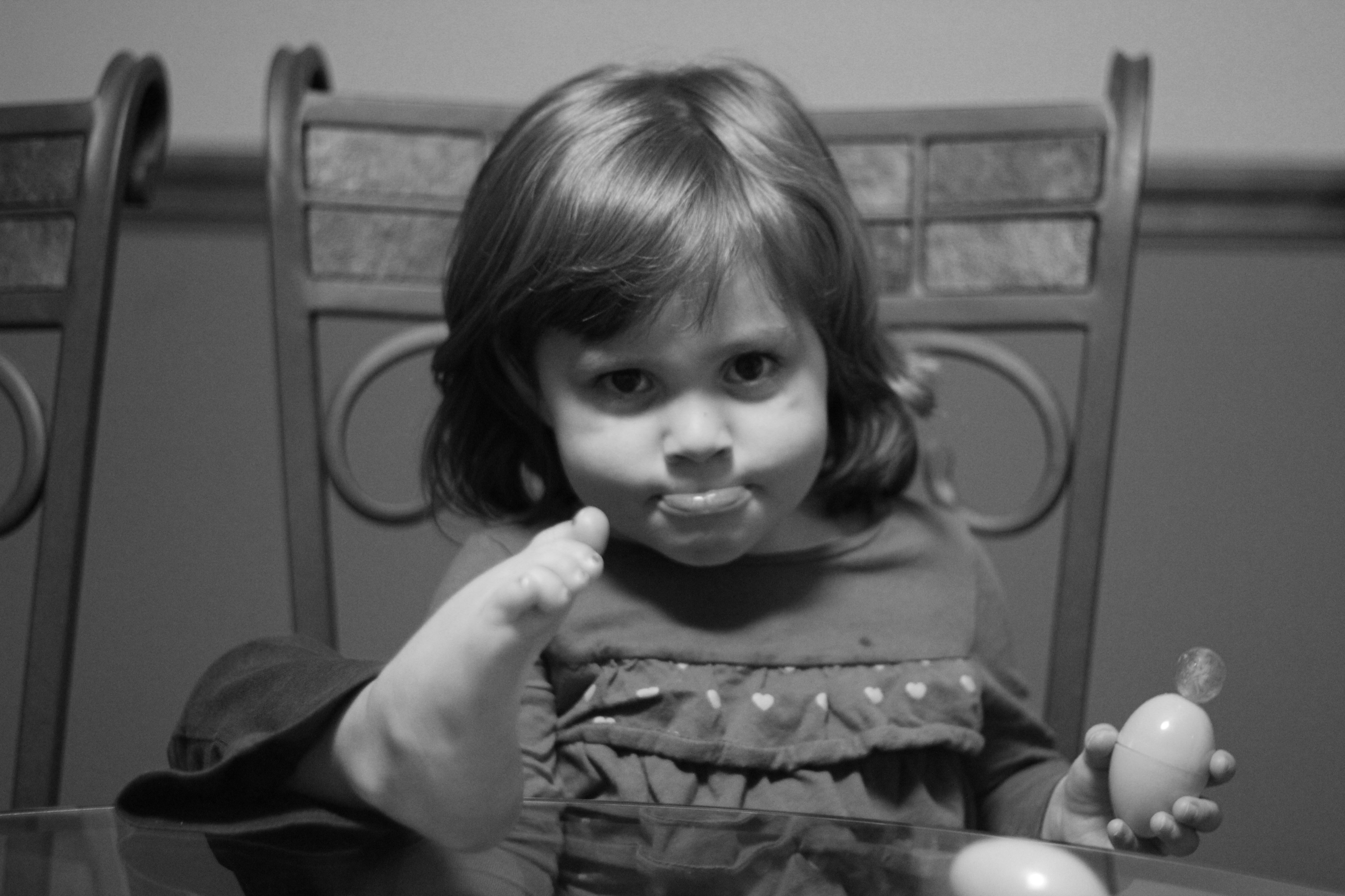 Tonight I will break a rule that I guess was more of a guideline than a rule. Originally I wasn’t going to post pictures of the faces of people that I know. Last week though I did that posting a baseball picture. Tonight I didn’t have a good picture other than this so I decided that the rule had to be broken. I really liked this picture for some reason. We were just hanging out at the table tonight when she stated making faces for the camera. This one was an example of her pouting look. I converted the file to black and white to get rid of the distractions of the colors around her. Now that the rule is broken you may see a few more pictures as time goes on. As I usually do I used the 50mm lens inside. For some reason that is the go to lens in the house.