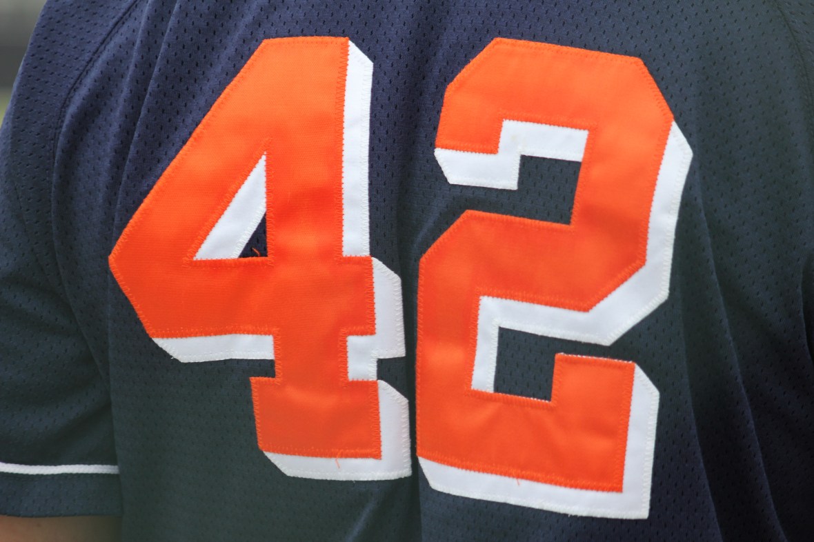 Today I went to the doubleheader at Lambert Field featuring the Purdue Boilermakers and the Fighting Illini of Illinois. I had a couple of ideas for pictures, but this one came to me as I saw Willie Argo warming up just before game two. Today is the 65th anniversary of Jackie Robinson breaking the color barrier. I have always admired him for what he did for baseball so I wanted to get a shot that honored him. I have always tried to do this if I could, and the fact that Willie had on Jackie’s number made that possible. I had to shoot through a chain link fence with Willie just a few feet away, but I feel that I got the shot that I was looking for. I will probably post another picture from the game later in the day, but for now if you want to see some of the other shots that I took you can check them out on my Google+ page here.