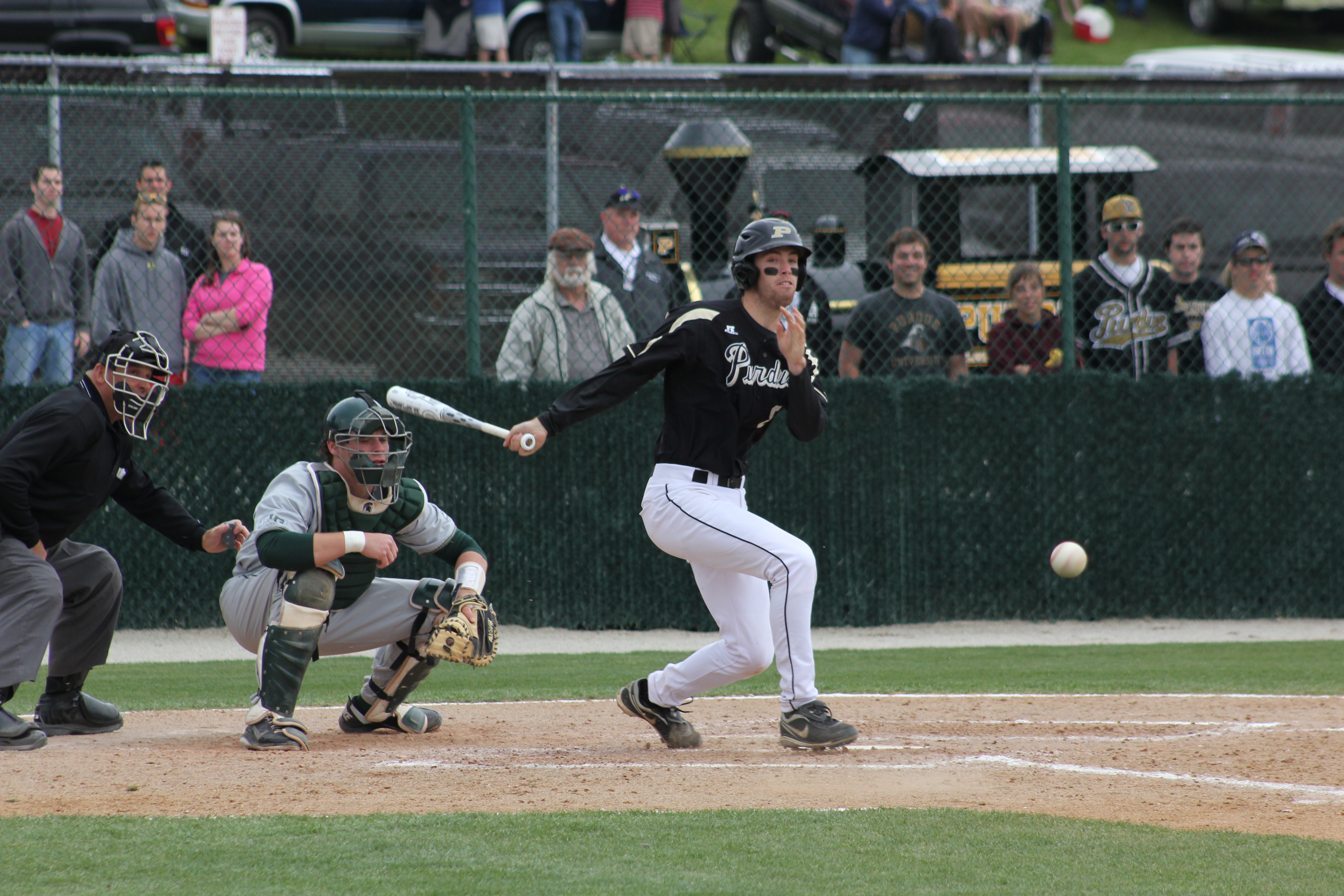 Yesterday while at the Purdue baseball game I nearly had an experience that I thought would have happened by now. In the sixth inning Angelo Cianfrocco came up to the plate and hit a ball right at me. The ball hit the fence in front of me hard enough that I felt it. I thought that I would share one of the series of pictures that I took as the ball came in my direction. The rest of the series as well as more pictures from the game can be found here on my Google+ page.