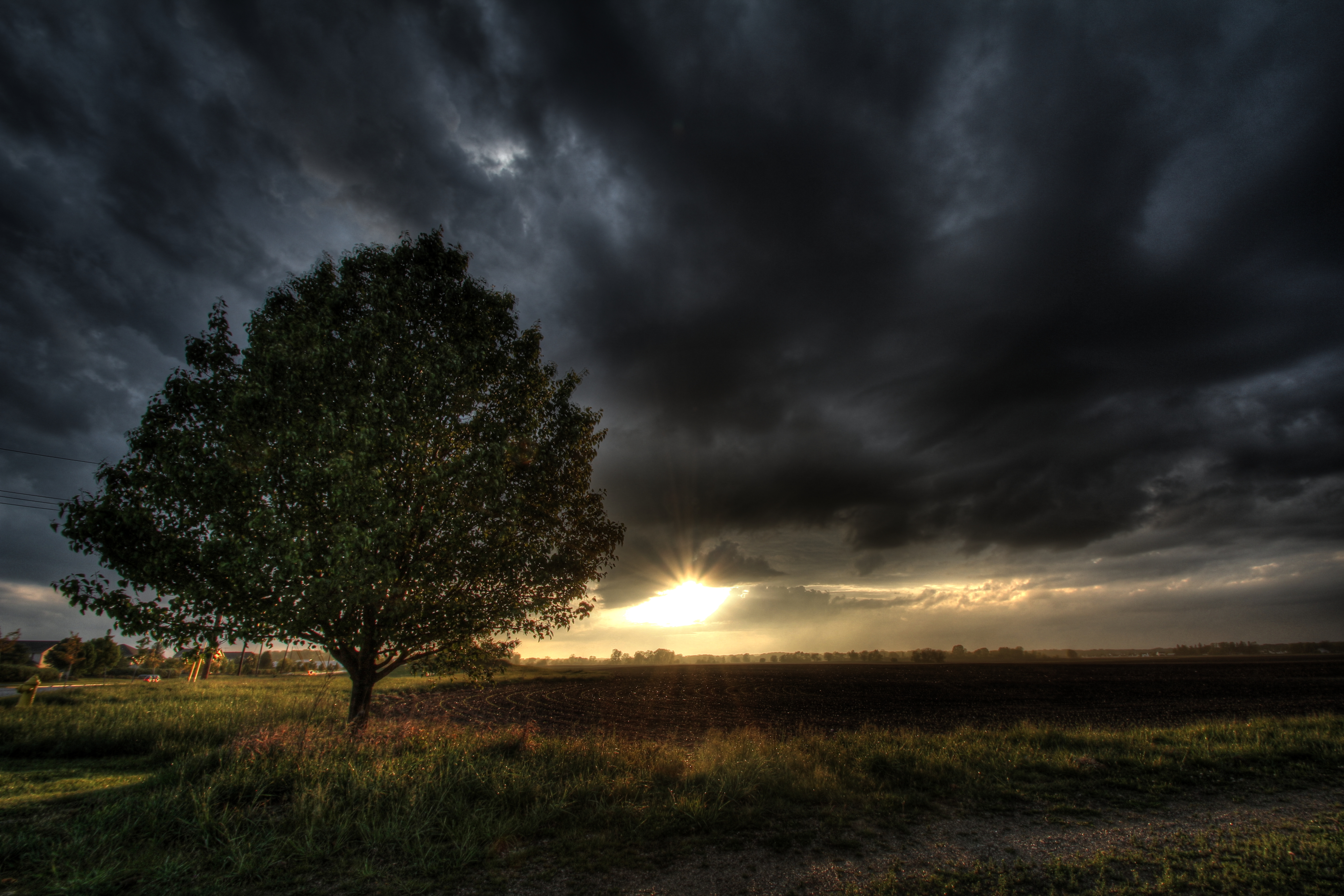 Tonight I was called into work just before the sunset. I knew that the way that the clouds looked that in a couple of minutes something awesome would happen. I was completely dark out, and I even had my lights on in my car. I quickly set up the tripod to try a couple of test shots. I didn’t want the lighter side of the spectrum so I decided to try something new. This is a three shot HDR image that was taken by using just the upper range of what would normally be the six shot spectrum. I really thought that the scene was beautiful, and I was hoping that one of those images would convey that beauty. I really liked parts of each of the three shots so I decided to run them through Photomatix to see what it could do. In the end I like the image, but I wish that the sun had come out a little better. Maybe I should have treated the first three shots as if they were on the lighter side of the spectrum and taken three more darker shots. That may have given me the shot that I was after. In the end this is an exercise in learning, and I think that I learned something today.