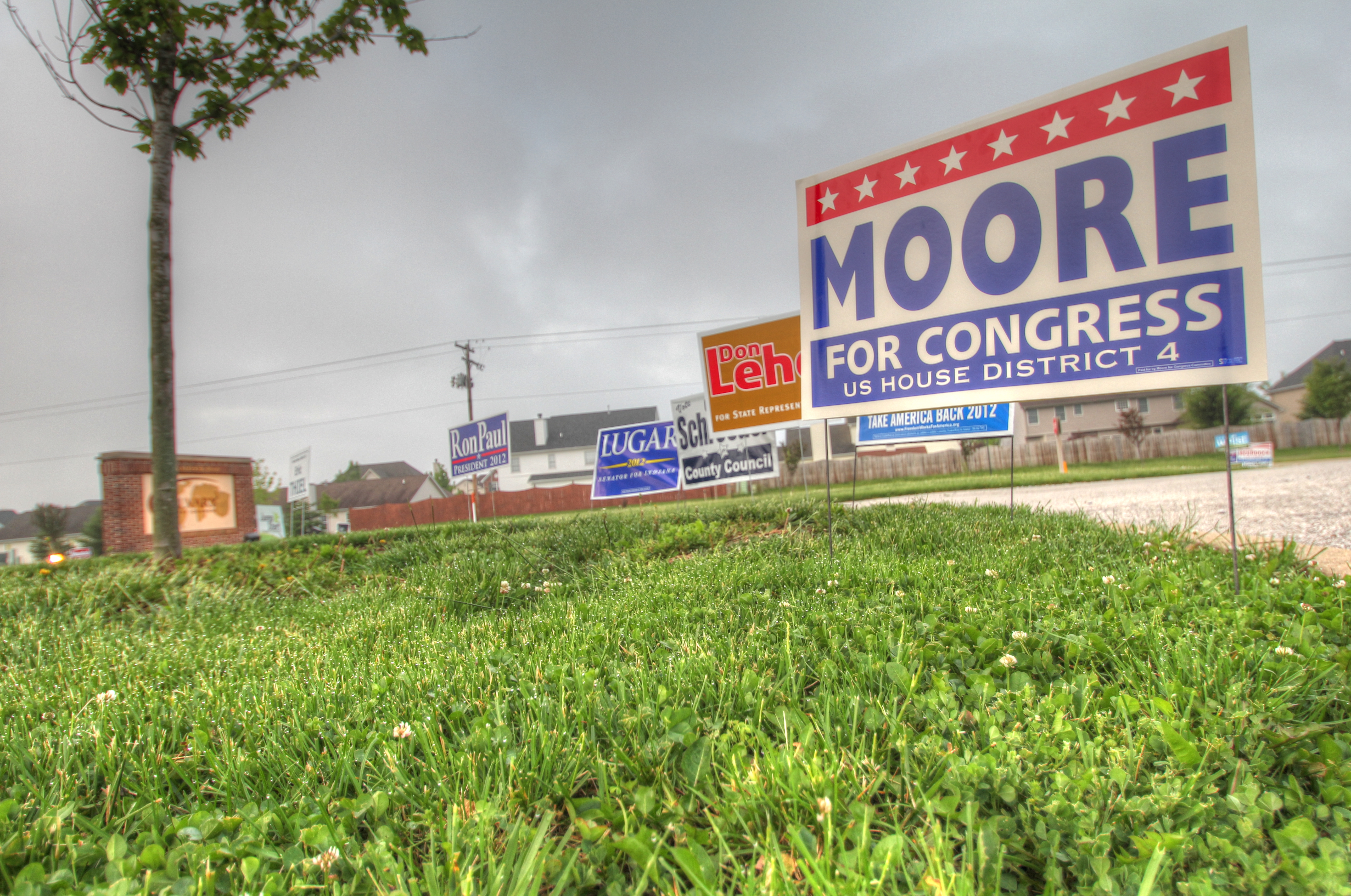 Today was primary day in Indiana. On my way to work I noticed that the building next to the one I work in was a polling place. I was very early so I decided to get my shot of the day out of the way very early. I think that I will use the early hour that the picture was taken as an excuse for its composition. This morning I thought that I had something good going, but as I looked at it tonight I noticed many things that could have been done differently. I shot the West Lafayette JV game again tonight, but I thought that I would try and post images other than baseball for a while. Good or bad this shot was intended to be the shot of the day. I guess that I will have a few chances in between now and November to get this shot right. With what should be a hotly contested Presidential election ahead of us the signs should be out in force.