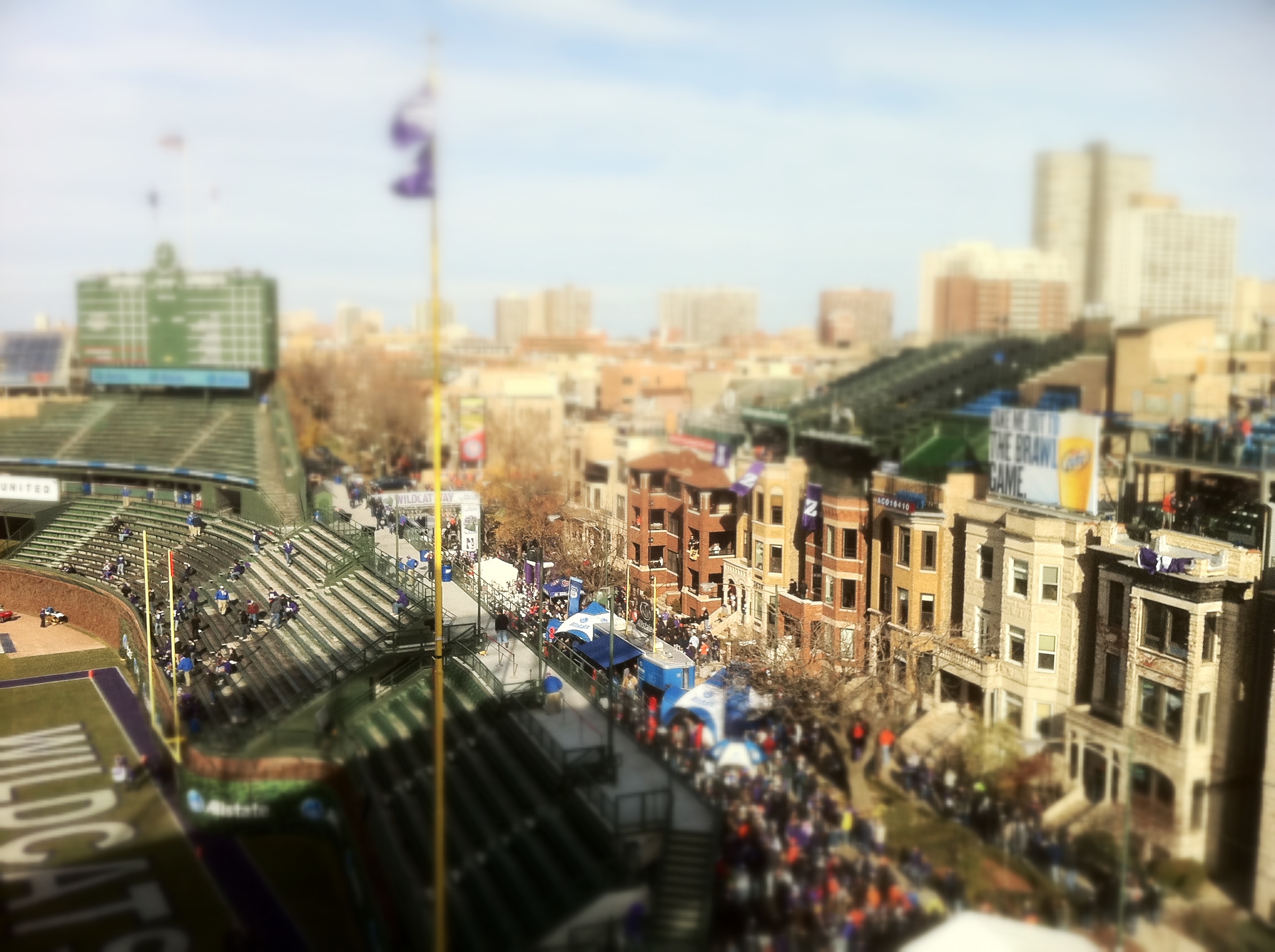 I think that when my 365 days are up for this project that I will continue to post a photo a day. Some of those will still be taken that day, but others may come from the past. This is kind of an experiment with that in mind. This was taken during the football game between Illinois and Northwestern at Wrigley Field a couple of years ago. I had the zoom lens on my DSLR and I didn’t want to swap it out to get a shot down to the crowd still outside the stadium. I pulled out my iPhone and took the picture that you see above. At the time it really did not do anything for me so it sat on my camera. A couple of weeks ago I started playing around with the Snapseed app for my phone. It has a feature where you can make a picture appear to have been taken with a tilt shift camera. I have always loved those shots so I looked for something on my phone to use it on. This picture of Wrigley came up, and I gave it a shot. I liked how it turned out basically making the neighborhood look smaller than it really was. I shared this photo that day on my photography page on Facebook, but I thought that maybe others would like to see it as well.
