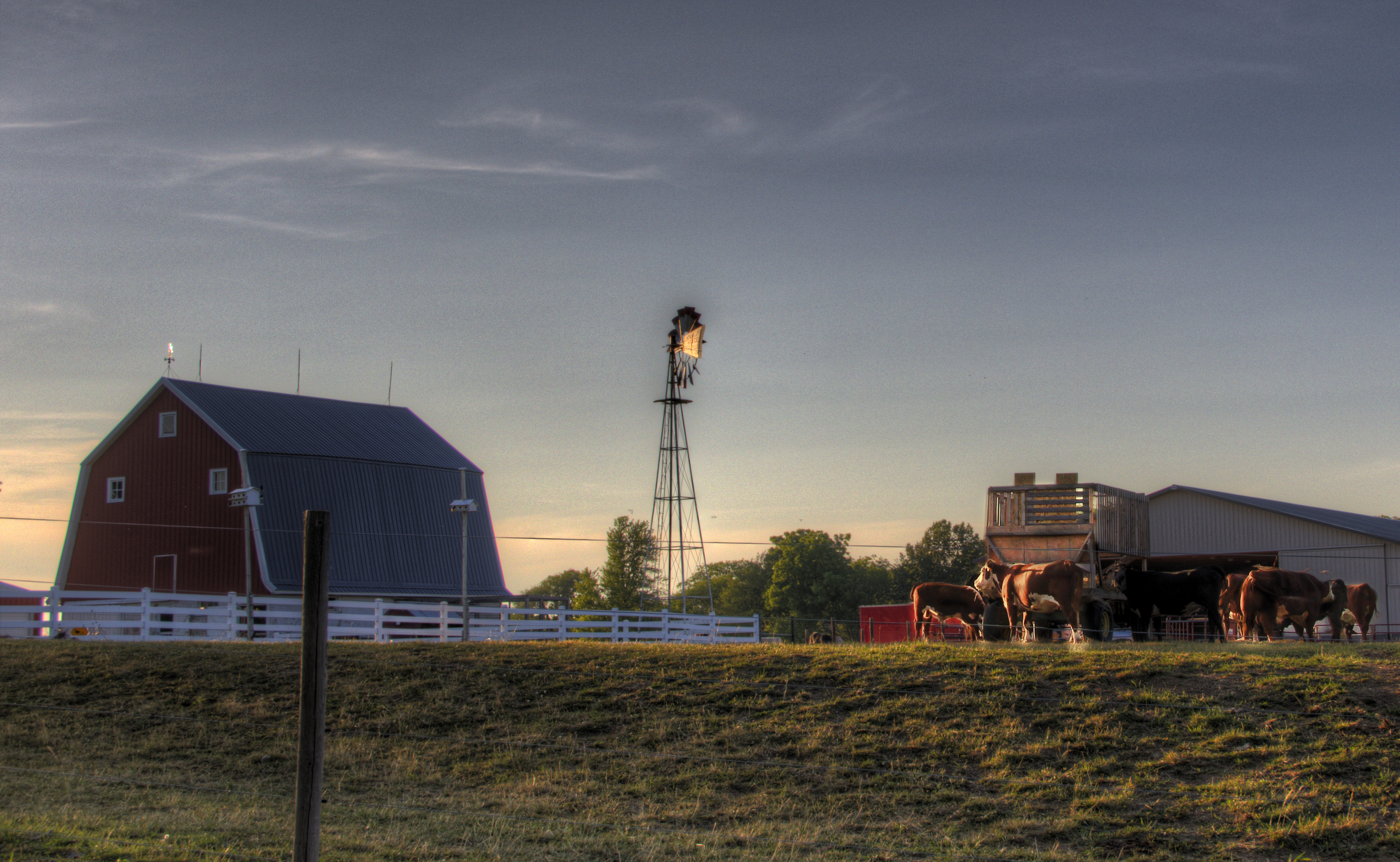 I was not sure how to go about processing this picture. One of the underexposed shots was a nice silhouette of the windmill and the barn. I didn’t think that enough of the barn was showing to go with that version of the shot though. I ran this through Photomatix using six exposures because of the glaring sun. I then took the 0 exposure into Photoshop with the tonemapped image. I ran the normal exposure through Topaz Adjust 5 to give it a faux HDR look, and then masked in the moving cows to eliminate the ghosting there. That was not as easy as it could have been because the images did not line up. I had to do a bit of moving around to get what I wanted. In the end it is not my favorite shot, but it is not bad considering that I only took two today.