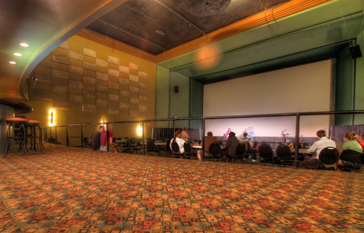 Tonight we ate in downtown Lafayette. As we were leaving the restaurant I noticed a free open mic night at the Lafayette theater. I have never seen the inside of the place so I wanted to take a look. For some reason I was not pleased when I walked inside. It was not the ornate theater that I was hoping for. I didn’t have my tripod so I improvised and set my camera on a chair that was stacked against the wall. I didn’t like the shot at first because of the low angle but it is growing on me. A crop helped things out a lot.