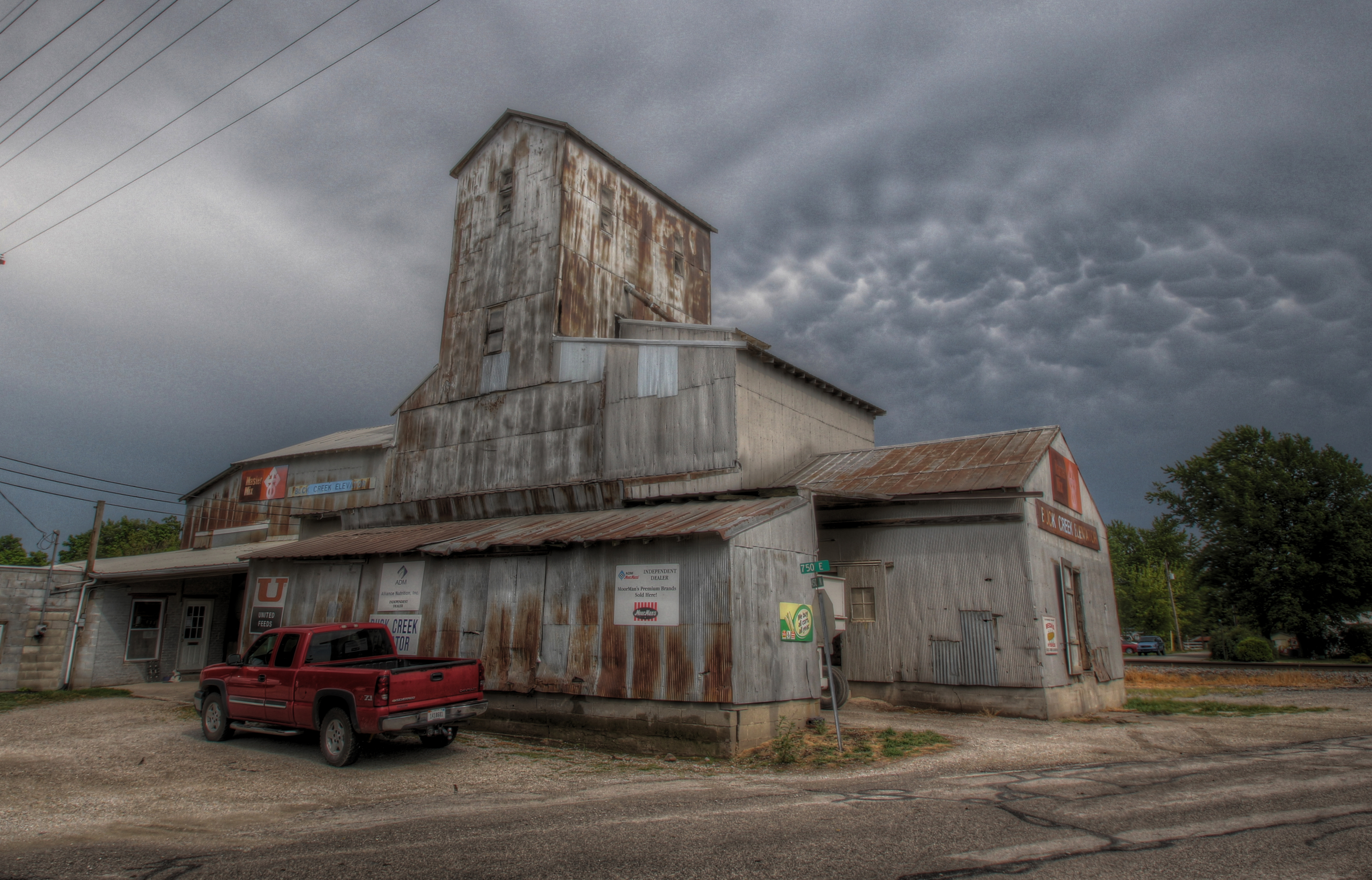 Today after work I did a little storm chasing. A nice little storm had just gone through our area, and I thought that I might be able to catch a lightening strike if I followed it a little east. I never did catch up with the storm. I did however end up in Buck Creek. They have a great little pizza place that I really enjoy. As I left with my pizza I realized that my picture was right in front of me. I put down the pizza and picked up the Canon. I didn’t get the picture that I set out to get, but I like the shot that I ended up getting.