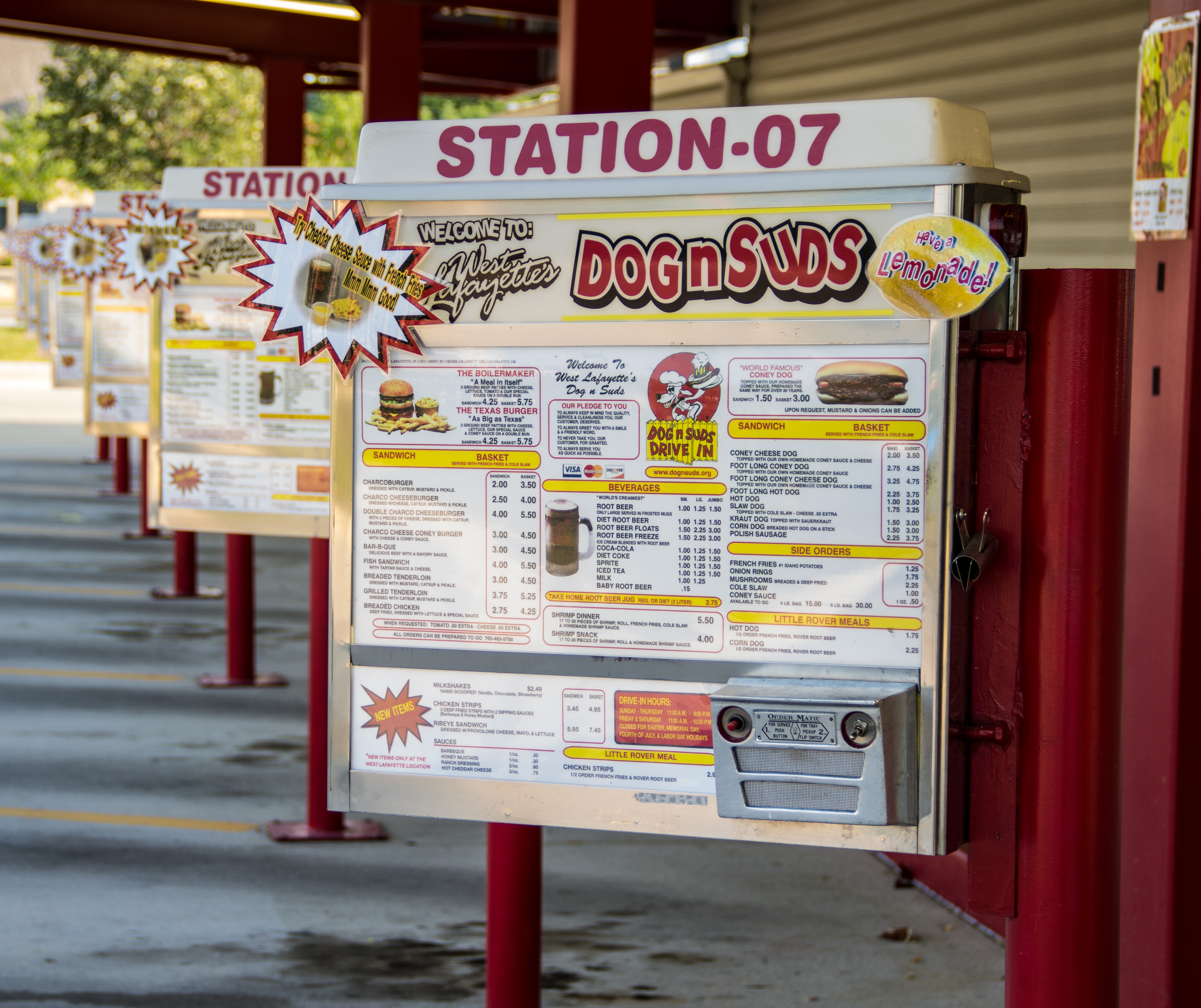 Today we went to Dog and Suds for dinner. Apparently we not only eat out a lot, but I also post a picture of the location. Today I had the camera, but I did not take a picture the entire meal. On the way back to the car I saw these stations where you can get drive up service. I had my idea for he picture of the day. I tried a couple of different things, but this one looked the best to me.