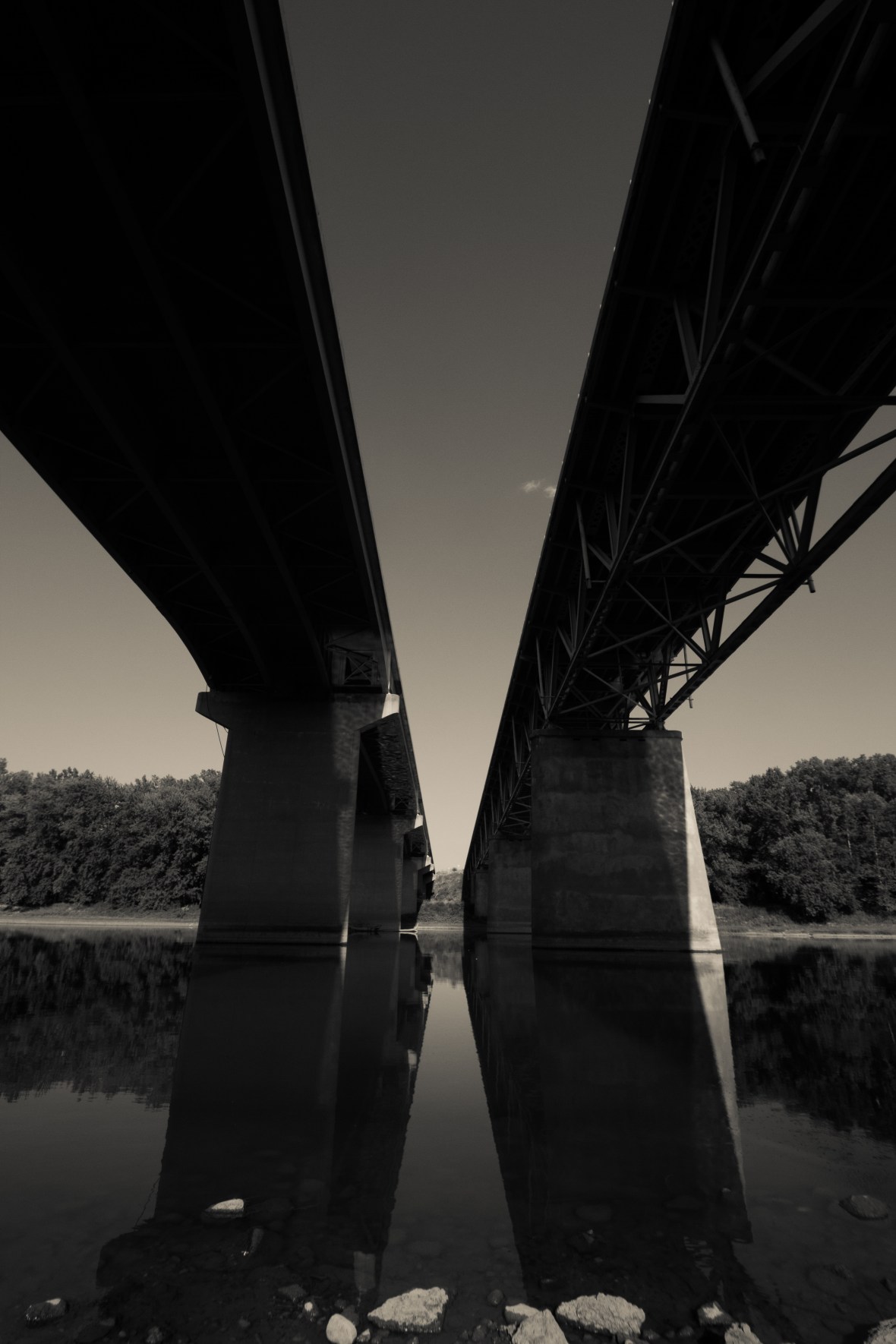 Tonight I got off work late with no idea of what to shoot. Everything just seemed too far away. I was driving down 43 after a failed attempt to find something on a back road. I drove right past this scene, and I could not turn around quick enough. I tried this shot landscape, but it seemed off. I then tipped the camera to get the shot that you see above. I only took two bracketed sets because I knew that I had it after this one. I really like the symmetry of this shot. I may try something similar in the fall.