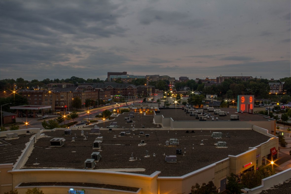 Tonight we ate at Scotty’s Brewpub in the Wabash Landing. After dinner we took the short trip up the elevator to see if there was anything worth shooting down below. I have used a similar shot to the one above before, but I thought I would give it another try. The key here is to try and get as many cars going by as possible. I did the best that I could. I was hoping for a nice sunset or even better an approaching storm, but I thought I got a nice shot anyway.