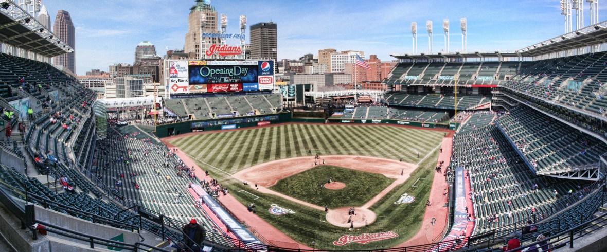 I took this last season on Opening Day in Cleveland. I have been to a few Opening Days, but never one on the road. After some brutal weather days the sun came out, and it was a great day for baseball. I had fun exploring the stadium before the game getting some shots. I liked this one from just off center behind the plate the best.