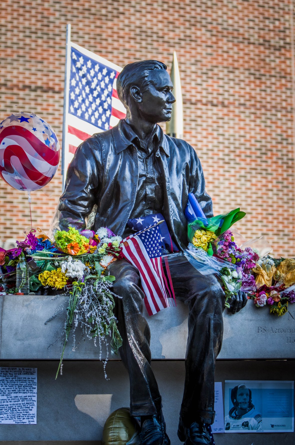 I have taken a few photos of the statue of Neil Armstrong that sits outside of the building named for him over the last few years. Something just draws me there. Maybe it is my love of space, or maybe it is the fact that it is a very cool looking building. I was first introduced to Neil Armstrong by my father. The lunar landing was actually on his 25th birthday. He had some records that played highlights from the mission along with maps that showed you how the day progressed. Since then I have always linked the two events. July 20th is not only the day we landed on the moon, but it is my father’s birthday. He was a humble American that really seemed to have a level head when we all know that he could be a little cocky. He walked on the moon after all. How many of us can say that? He preferred to stay out of the limelight, and in today’s world of reality ‘stars’ that is really something to hold on to. While his crew mate Buzz Aldrin danced with the stars he enjoyed his retirement.