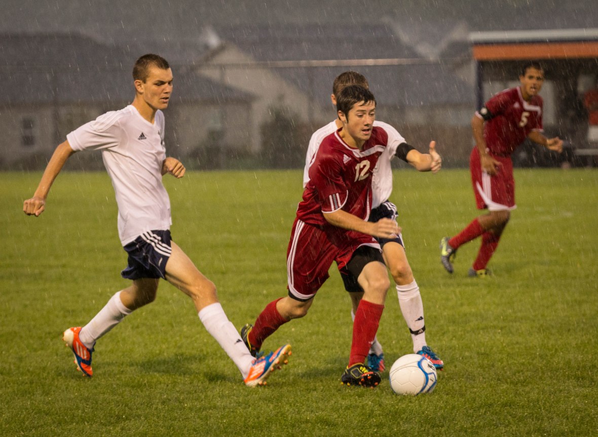 Tonight has been circled on the calendar for a couple of weeks. At a birthday party we were invited to tonights soccer game by one of the coaches who is a friend. Harrison was playing West Lafayette so we had a chance to see a couple of local teams. On the way to the game we saw the dark clouds overhead, but we were hoping to see some of the match. We no sooner walked through the gate when the rain started. It did not start slow either. We went straight into a downpour. I did not let that stop me. I made a makeshift shelter with my camera bag and an umbrella. I had my day bag on my shoulder, and I tucked the umbrella into it so it would stay above me without me actually having to hold onto it. That seemed to work fairly well. The rain kept coming down hard, and I knew that it would lead to some interesting pictures. My new lens started to get way too wet for my liking though, and I soon joined the rest in the car. I did manage to get a few minutes worth of shots though.