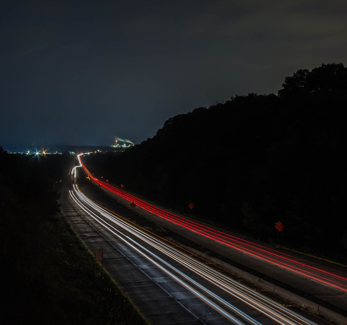 The biggest technical portion of this shot is the fact that it was shot without the aid of a tripod. I went out with shooting off the tripod in mind, but my head was not on the tripod like I had thought it would be. I walked to the bridge anyway hoping that the railing was flat enough to stabilize my camera. It was, and I was able to get the shot that I wanted. The only problem with shooting off of a bridge is the fact that every car that goes over it makes the bridge shake. I had to walk a fine line between leaving the shutter open long enough to get the light trails, and having it open too long so that the busy road behind me would fill up. In the end I got the shot though, and I can cross it off of the list. The scenery looked a lot better driving by quickly.