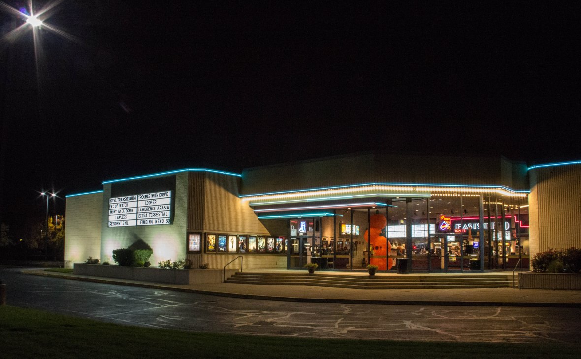 As I said above this was handheld so I had to pump up the ISO to get somewhere that I could hold steady. I then brought the photo into Lightroom to work on it a little. I adjusted most of it to where I liked it, but the interior and the movie posters still looked a little off. I used the adjustment brush to add a little highlights and clarity to those areas, and I think the end product looked a little better for my efforts.