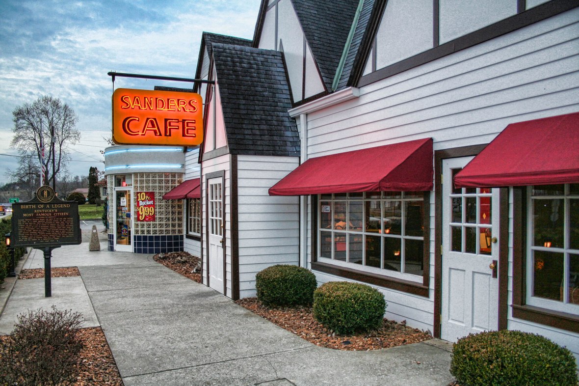 Today I will go back a little further for the photo of the day. I took this picture near the end of 2006 on my way back from a trip to see Purdue play in a bowl game in Orlando. I had a couple of stops planned, and seeing the original building where Kentucky Fried Chicken was made was on that list. I just thought that it was a great lunch stop on my route. I had to go a bit out of the way, but it was very cool. The inside seemed to hard to photograph at the time, but the outside seemed ripe for the picking. I remember that I had to wait a bit to get this shot with no patrons in view. It is nearly six years old, but will finally get published.