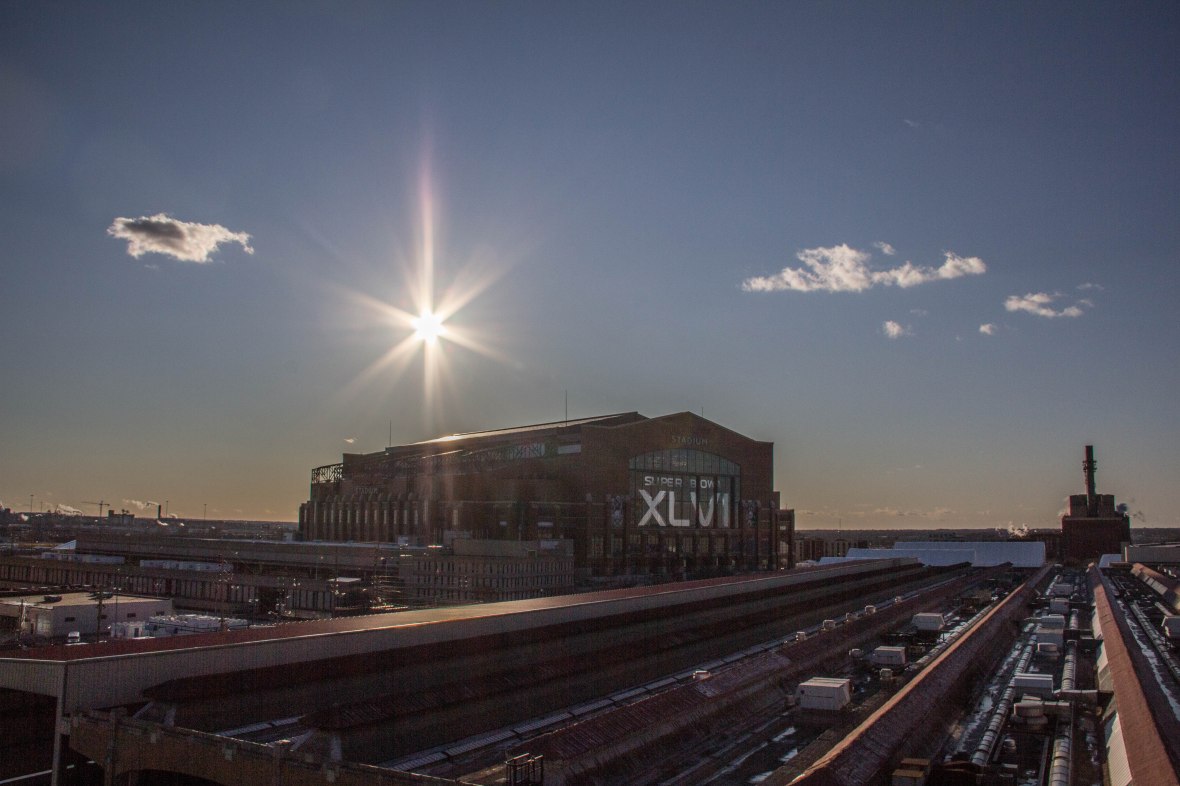 This shot was never really meant to see the light of day. I went to the top of this parking garage to see what my view of the stadium would be when the sun went down. I took a test shot to see what I could get in my viewfinder. I saw a sunburst so I didn’t delete it right away. All the prep led to one of my favorite shots in my 366 project. I called it A Super View, and I guess this picture shows that some prep went into it. Here is the picture after the sun went down. A lot of things happened at the right time to make an interesting picture. Indianapolis did a fantastic j0b hosting the Super Bowl. I took a lot of pictures that day, and a lot of them will find their way onto this site as time goes by.