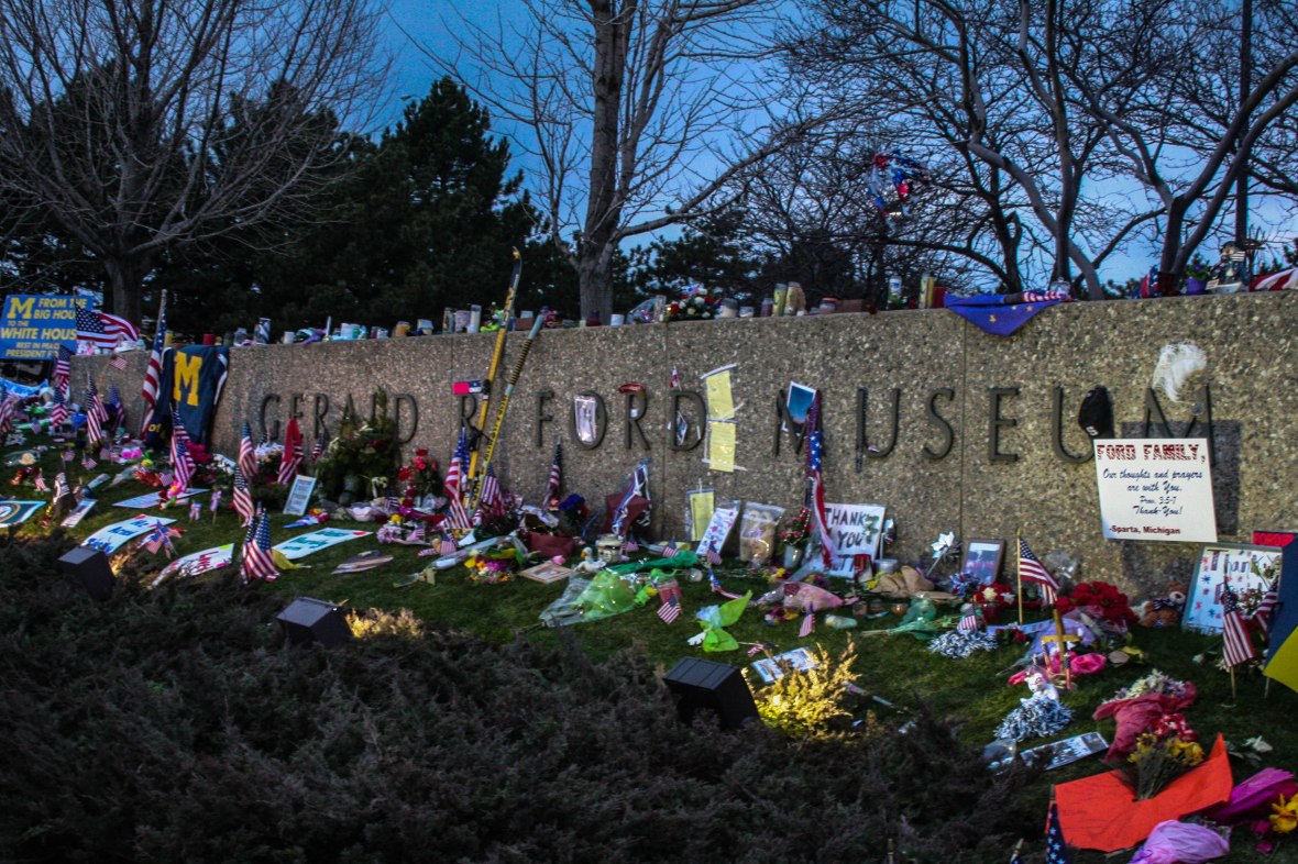 With the election in just a couple of days I thought that I would post another picture from my Presidential Museum travels. I have been to the Ford Museum in Grand Rapids, Michigan more than any other. The fact that it was only about two hours from my old home made that journey very easy. I was there the night they had his body lying in state, and I returned the following weekend when I took this photo of the support and encouragement that was left by the entrance sign. Ford was a man thrown into a very tough situation much like Harry Truman was. Our world was not at war like when Truman was sworn in, but our country was. He had a tough job of making the office of the President look respectable again. He was often lampooned, but he really did the best that he could. I have always loved this shot very much, and I am glad that over five years later I can post it.