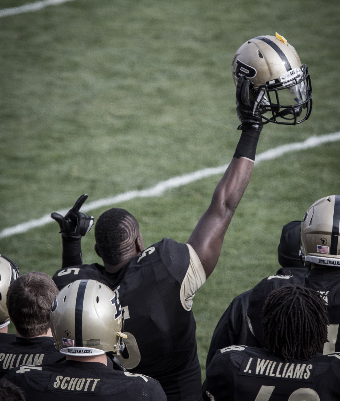 Saturday I attended the Purdue Football game against arch rival Indiana. I had a good time, and the good guys won. Just before the opening kickoff I noticed senior Antwon Higgs with his helmet in the air. It was an emotional game for many reasons. It is a heated rivalry, senior day, a bowl on the line, and rumors of coach Danny Hope losing his job. I thought that this symbolized the solidarity that the team showed. I thought that I would post this picture this morning because I liked it, and to give a link to my other pictures from gameday. If you click here you can see them on my sports blog. I have kind of let that blog go by the wayside except to post my pictures on it. Most of the other writing has ceased.