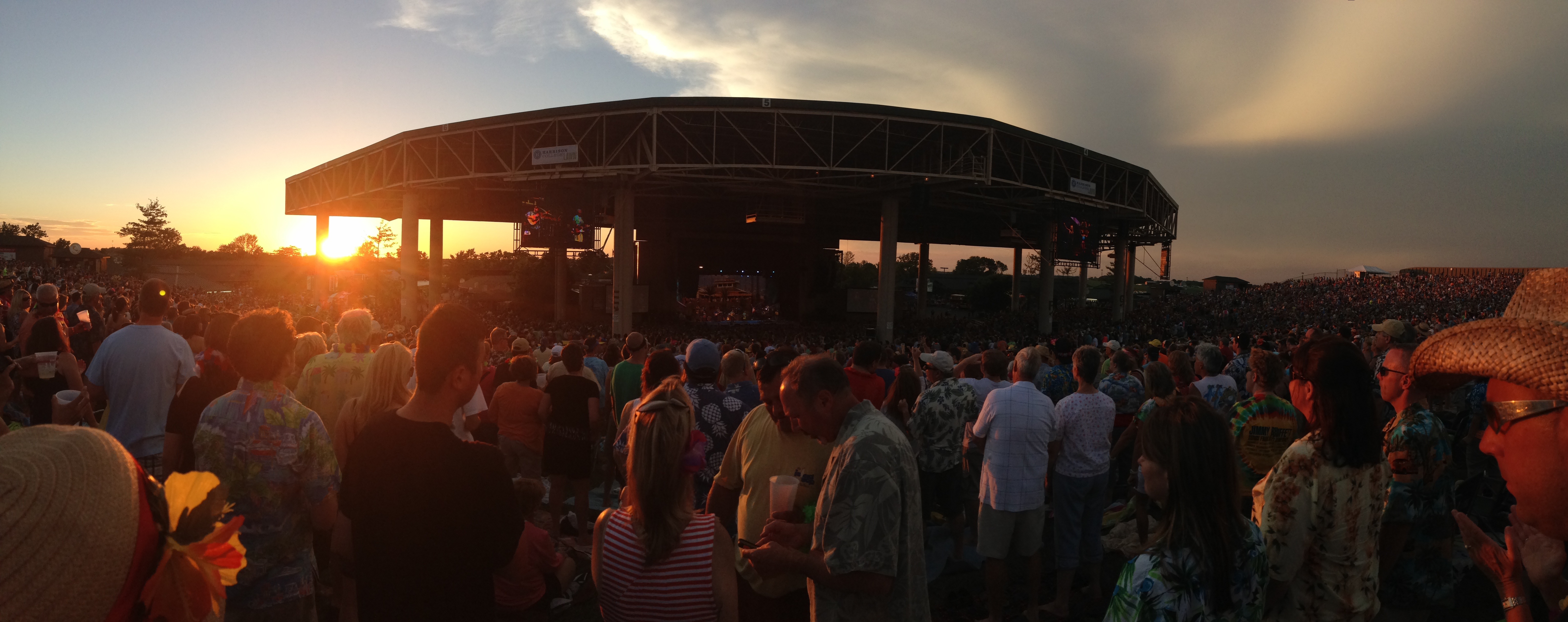 Last night we went to see Jimmy Buffett in Indianapolis. It was my first time to see the famous singer in person. When we found our seats in the lawn I knew that the sunset would be amazing. The only problem was that they did not allow cameras in. A pat down at the entrance even prevented my point and shoot from going in. I was just left with my iPhone. At the end of the day there are worse problems to have than shooting with an iPhone. During the show I took a few pictures with the phone, but it was this panorama that I really liked. I don’t use this function on my phone as much as I should, but here it worked really well for me so that I could get everything in the frame. It really was a magical sunset that then turned into a lightning show off to our right as what a small cell formed after it passed us. What a great backdrop to a great concert.